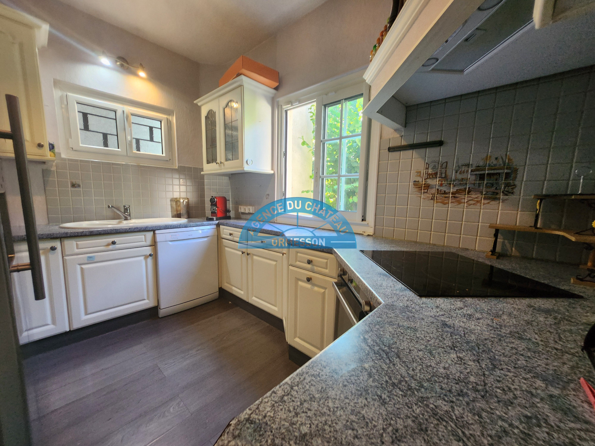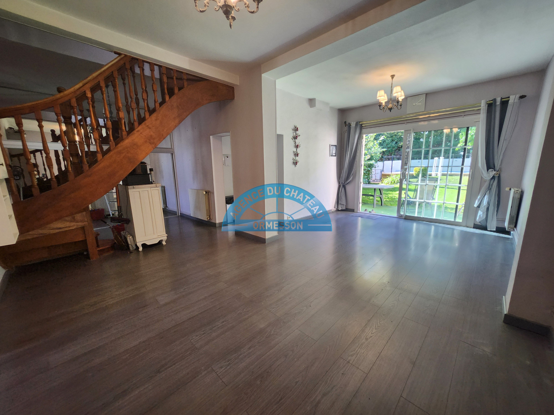 Au rez-de-chaussée : une entrée avec placard et cellier, un bureau, un salon, salle à manger donnant sur le jardin arboré et sans vis à vis, une cuisine aménagée et équipée, de nombreux rangements.